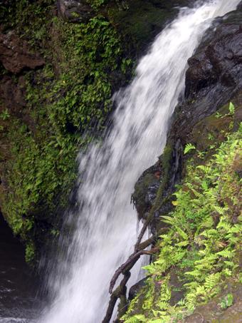 Najpierw sciezka, a jak sie juz skonczy, po lianach na dol, obok piewszy spadek wodospadu, chce dotrzec do nizszych partii. Wole nie myslec, jak to bedzie z powrotem, na towing nie mozna liczyc:)