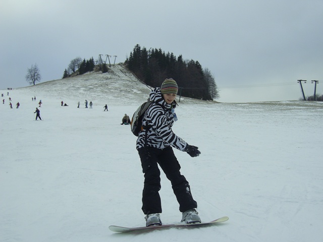 Zebra na śniegu? zawsze wiedziałam, że co cztery kończyny to nie jedna - łatwiej się na tej desce utrzymać.