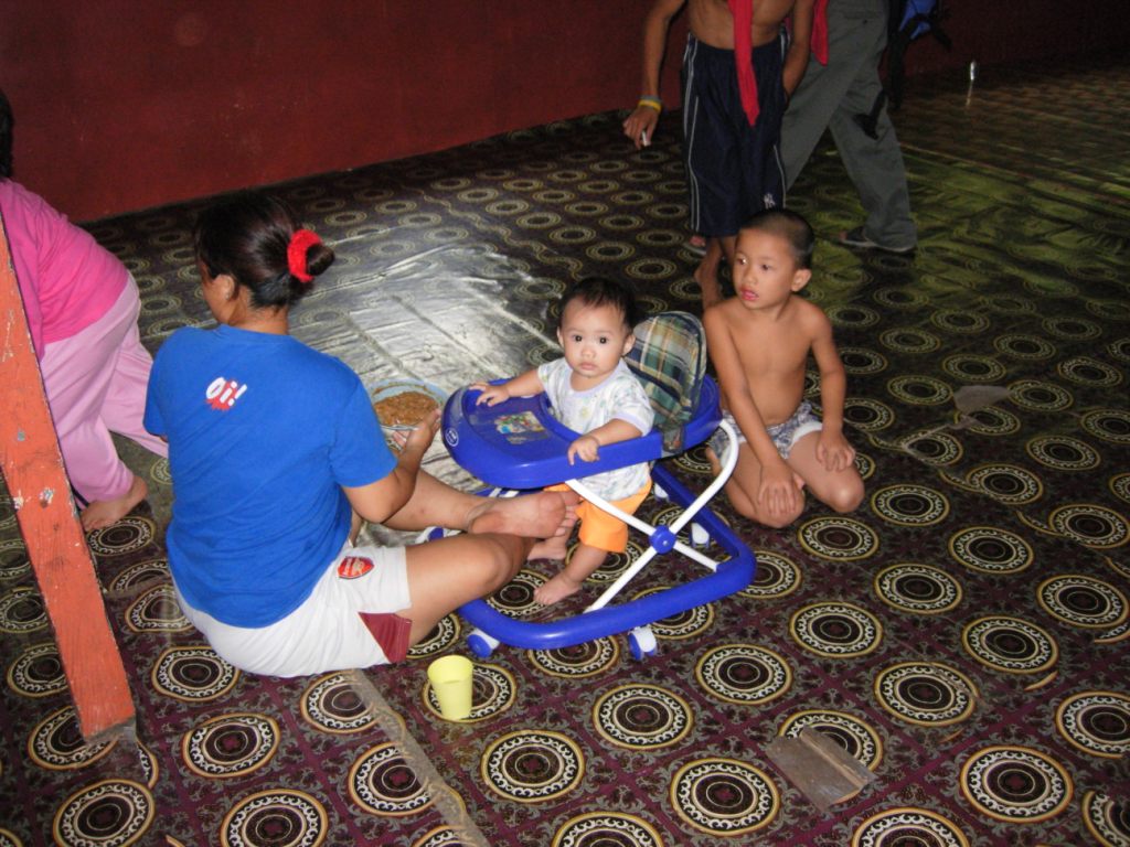 A to moj widok z okna. Na dzien dobry. W oddali dwie wyspy: ta wieksza to Pulau Manukan (Druhny zgadna jaki ma ksztalt? BUMERANG!!! Bingo!) oraz Pulau Mamutik (hi hi, KTO wymysla te nazwy? Zdecydowanie KTOS z wysokim PH).